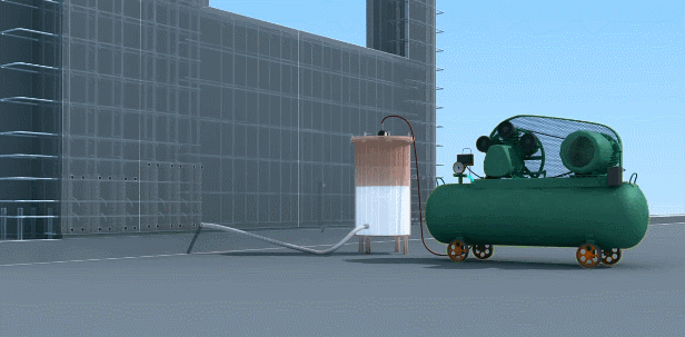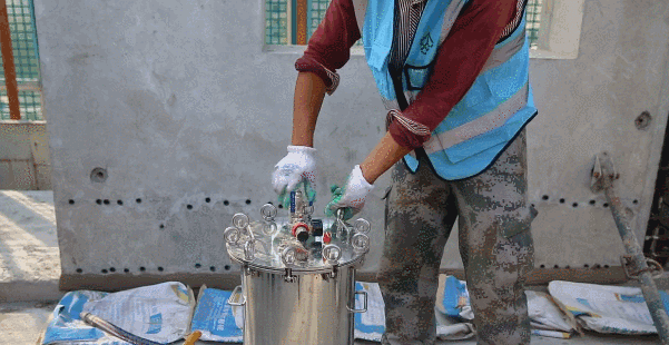 鋼筋套筒灌漿是通過空氣壓縮機將空氣由氣管輸送至灌有攪拌充分的鋼筋連接用高性能灌漿料的灌漿壓力罐。