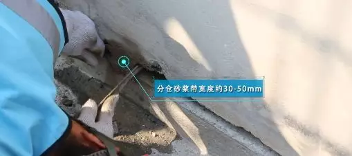 分倉砂漿帶寬度約30-50mm,分倉完成后進行封倉施工。