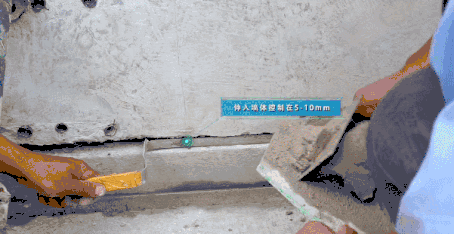 首先將專用工具塞入預(yù)制墻板下方20mm縫隙中。