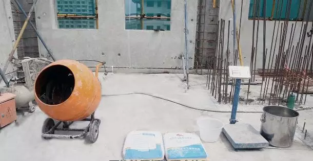 首先在攪拌設(shè)備中加入部分水。再倒入2袋灌漿料,最后添加剩余的水量。
