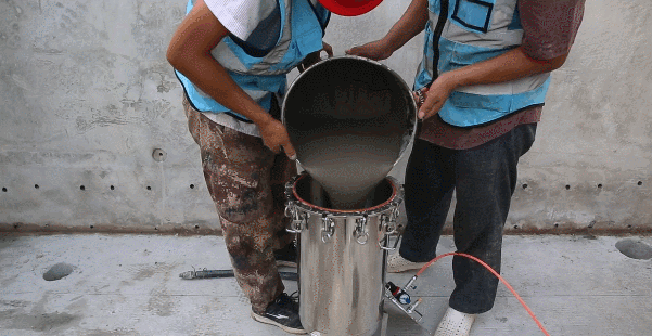 首先將攪拌好的灌漿料倒入灌漿筒?! ?/p>