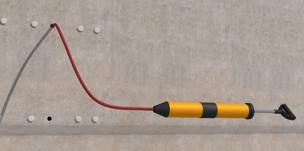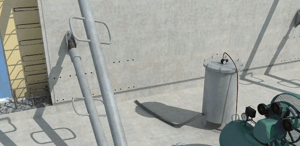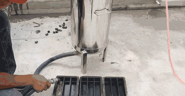 連接灌漿筒與空壓機通氣管。灌漿管插入灌漿孔,空壓機開始增壓?! ?/p>