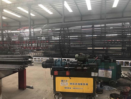 - 鐓粗直螺紋套筒連接是利用鐓粗機(jī)先將鋼筋端部鐓粗,然后再利用專用機(jī)床對(duì)鐓粗段進(jìn)行套絲,通過(guò)鋼筋端頭特制的直螺紋和直螺紋套筒咬合形成整體的一種連接方式。