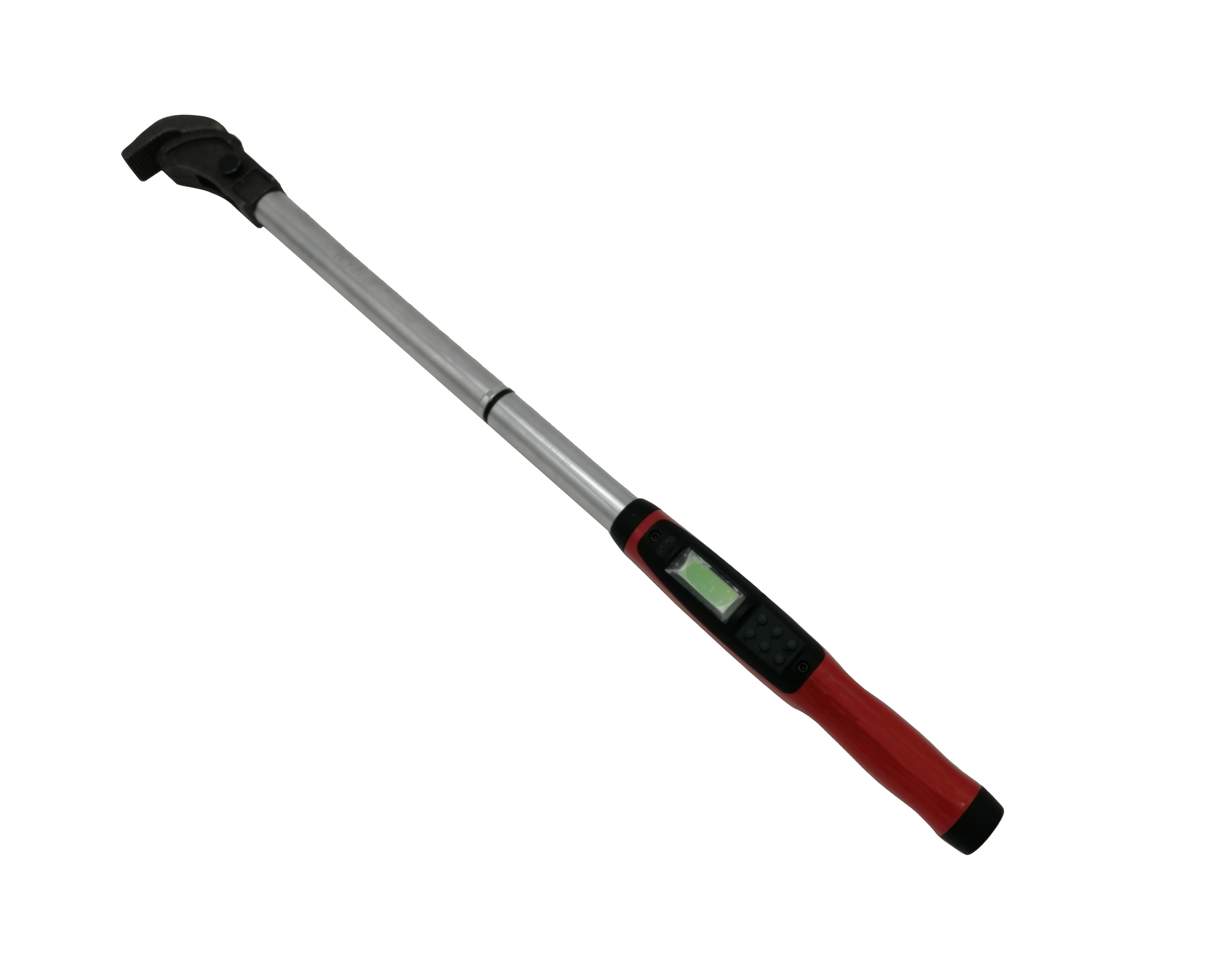 該數(shù)顯扭矩扳手采用微處理技術及先進的傳感技術,已達到精確的扭矩預測和測量。該產(chǎn)品是剛研發(fā)的新一代高品質的語音數(shù)值智能型緊固工具,產(chǎn)品精度高,具有零位自動矯正,帶有多種形式的報警、語音功能提示,跟蹤、峰值、預置三種工作模式自由切換。此產(chǎn)品通過應變式傳感器原理,將聯(lián)結工件螺栓、螺母的緊固扭矩傳遞給智能芯片,通過智能芯片的自動處理后,將緊固的實際扭矩以4位半液晶顯示器顯示出來,達到對聯(lián)結工件螺栓、螺母精確預緊的目的。操作時具有語音提示功能,智能報警提示功能、峰值模式下對緊固的扭矩值具有手動和自動保存功能、USB接口和電腦進行通訊功能、三種扭矩(N.m、Ibf.ft、Ibf.in)單位自由切換功能、到達扭矩設定扭矩值聲光報警提示功能。